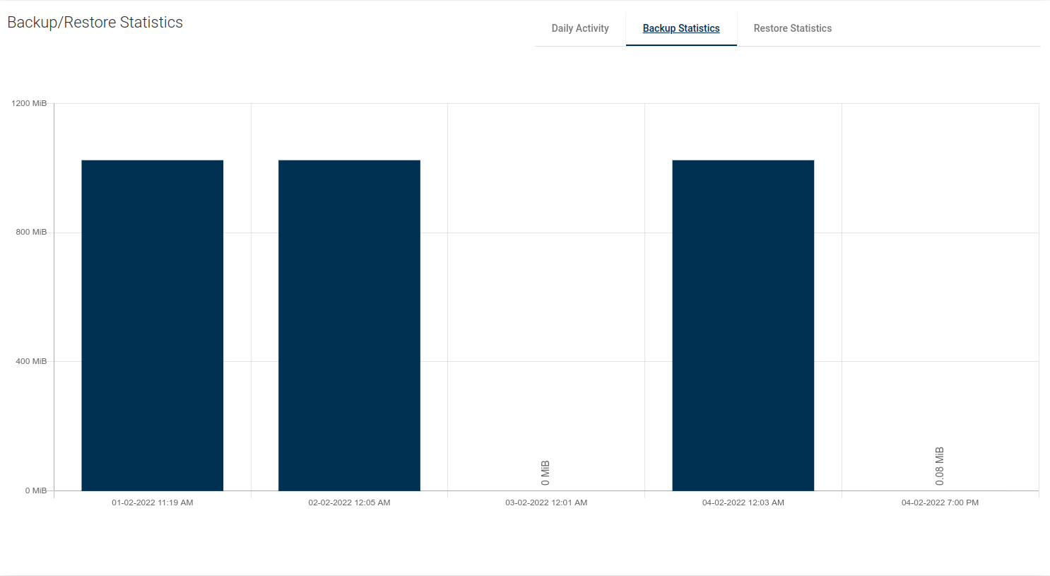 First, you'll see a daily summary of the backup and restore operations for the last month. This view is called "Daily Summary" and is the default view. You can switch the report between four views.