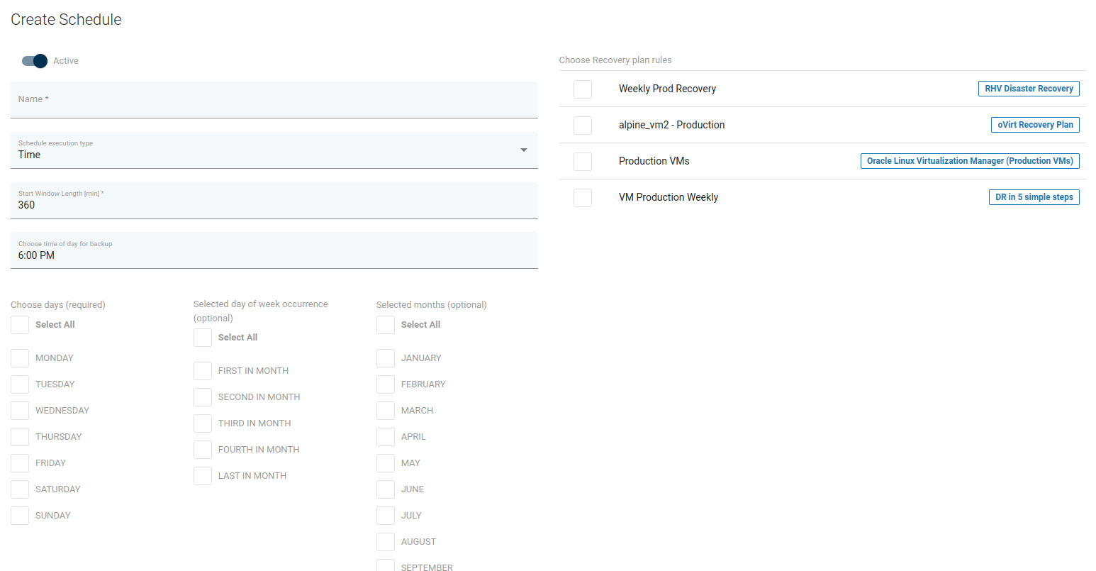 The Schedule defines when and on which days recovery plans should run. To define a new schedule use the ![]()
