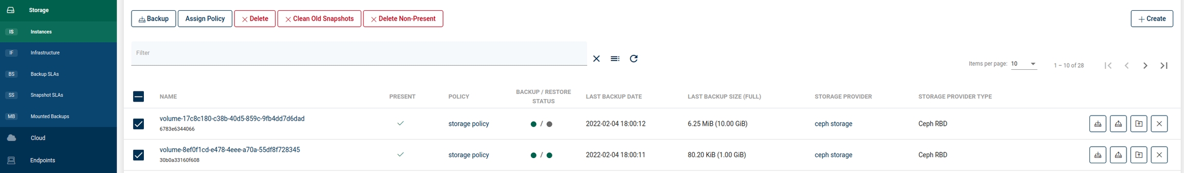 To perform an on-demand backup, go to the instances tab under the Storage Providers section.