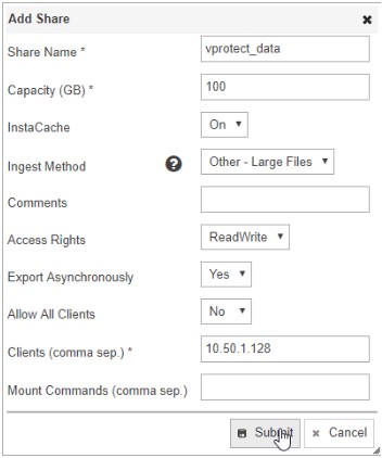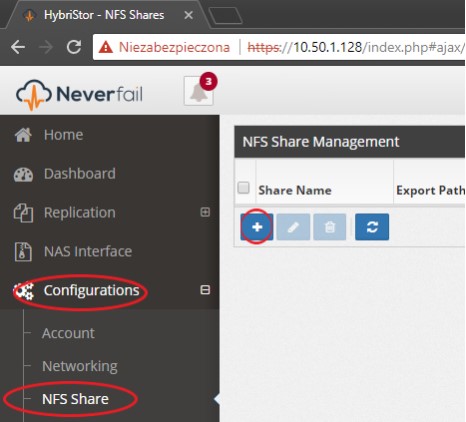 Login to the HybriStore dashboard and create NFS share:
