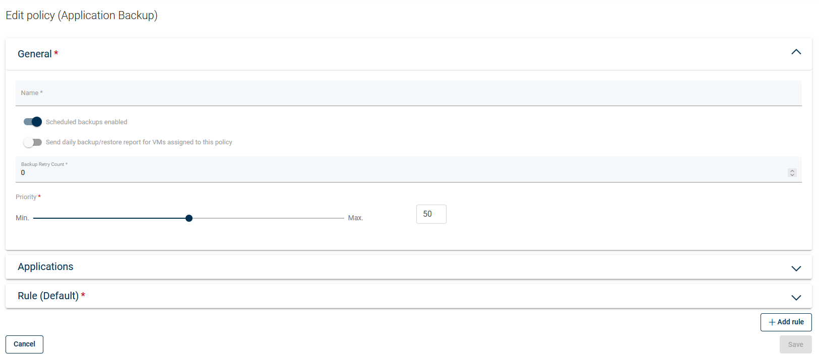 Specify backup rule details - especially backup destination and schedules
