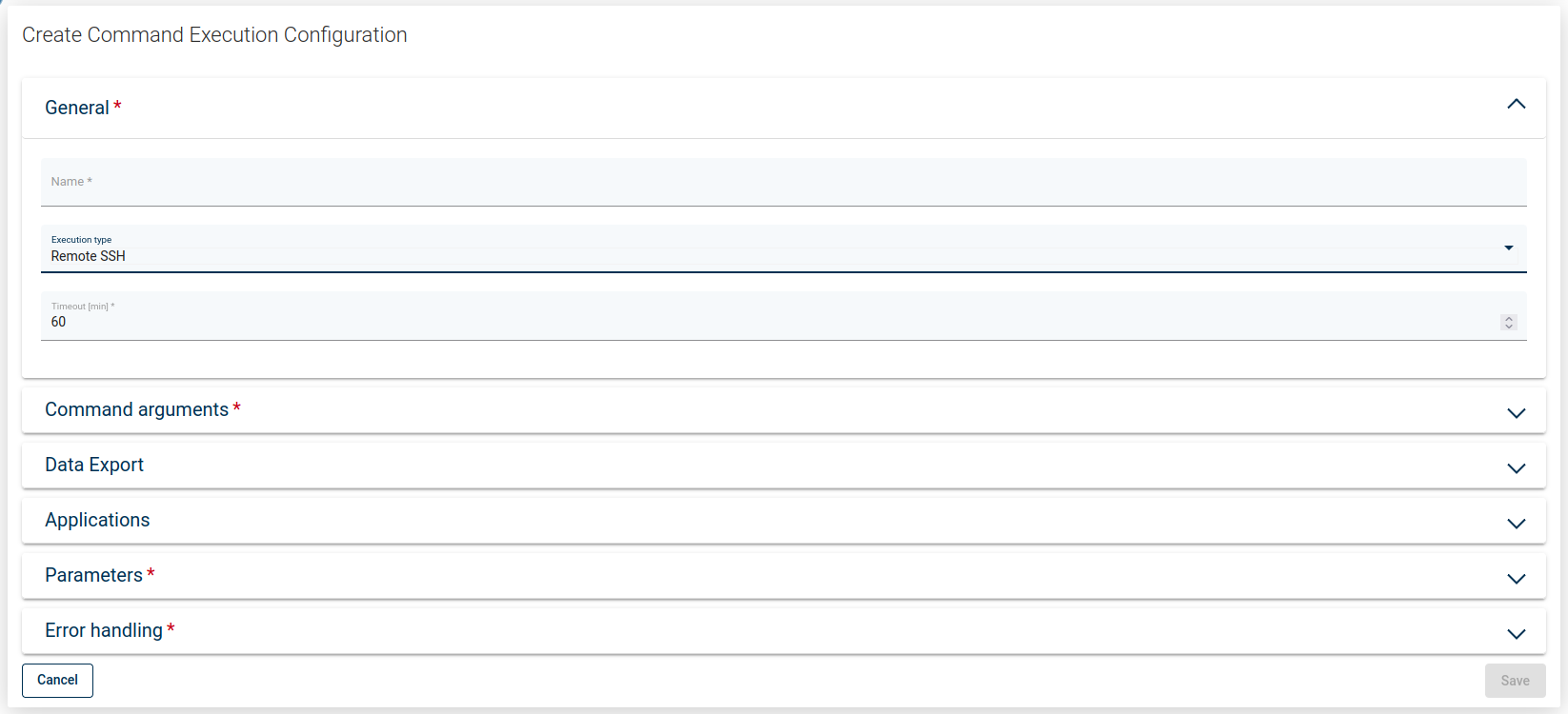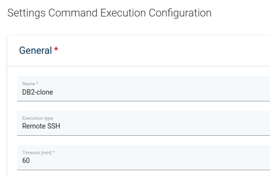 You need to provide its name and the Command Execution Configuration and select the node which is going to do the work - for "node" type command executions. If the command execution type is "remote ssh", you also need to provide ssh access. To schedule application backup, you need to select the backup policy.