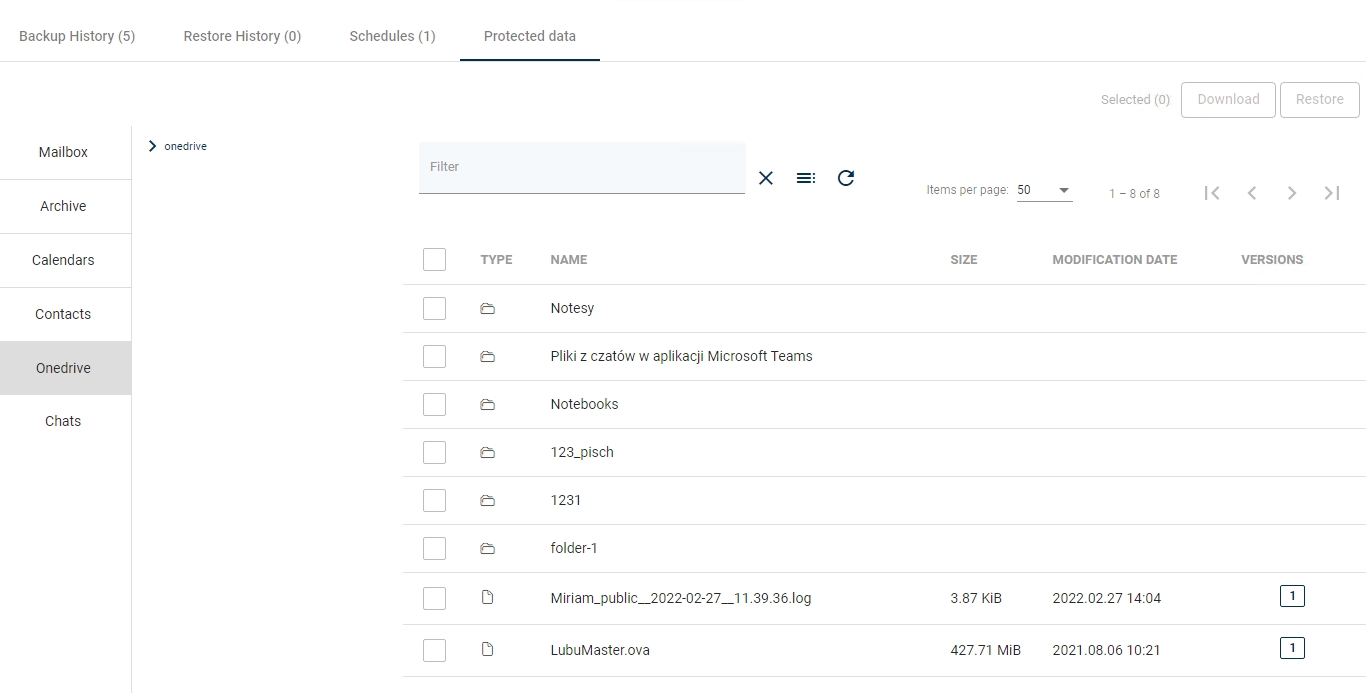 The calendar extends the possibilities of adjacent statistics. It allows you to neatly define the range of days you want to see, additionally makes a quick summary of the number of backups and restores (top right corner). Blue - the sum of all backups, Green - the sum of successes, Red - the sum of failures.
