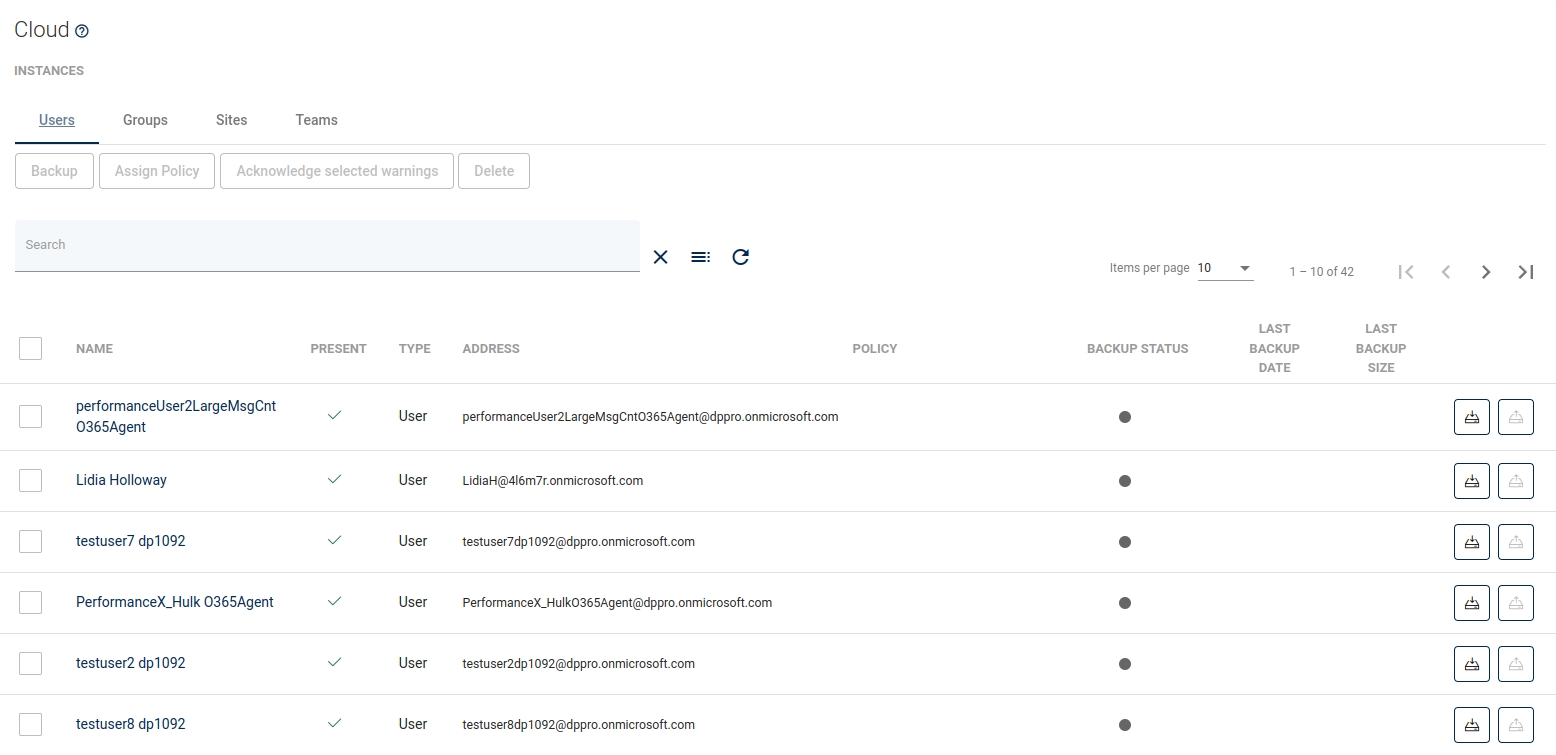 In this view, you can see all users and sites, and teams synchronized (imported) from the defined organization (Microsoft 365)