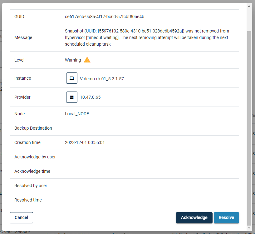 Click on the button "Acknowledge" or "Resolve" depending on which status you would like to set
