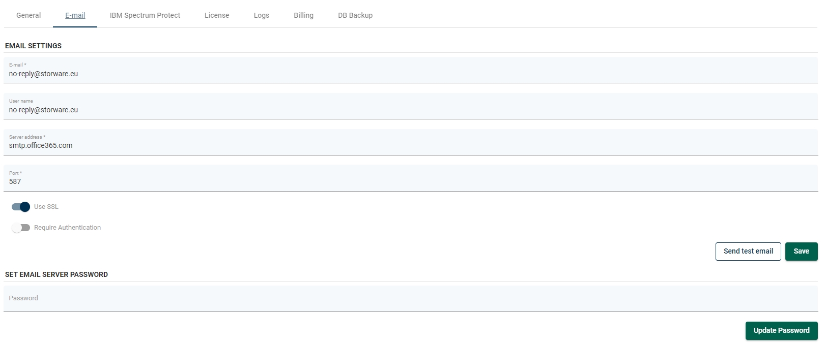 In this section, you can configure access to SMPT as a relay to send e-mail messages from the Storware Endpoint server to the defined recipients.