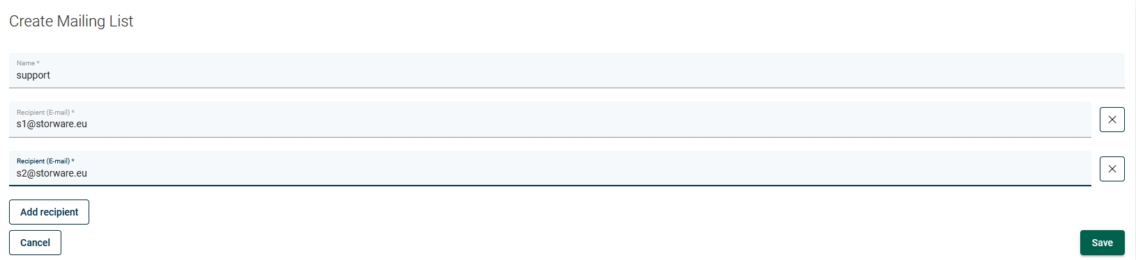 Fill the name for your list and add recipients e-mails by clicking Add recipient button.