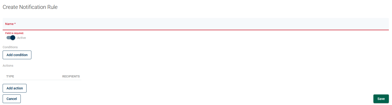 Fill in a name for your rule, set your notification to active and add one or more conditions from a list.