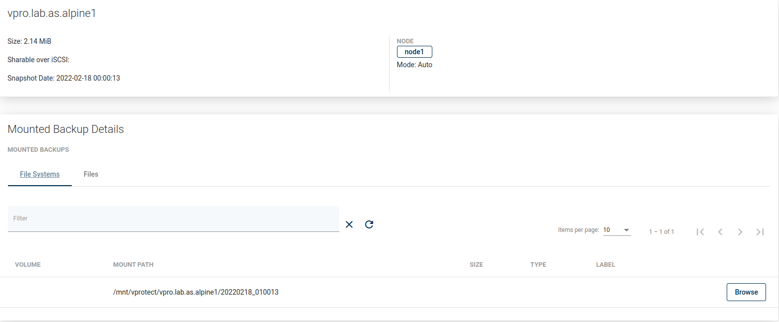 To go to the details page of mounted backup click on ![]()