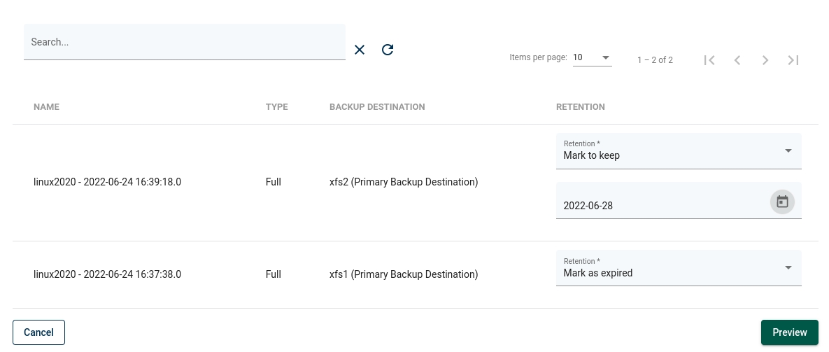 On the list of backups you can also adjust retention for selected backups. Each backup can be set to: