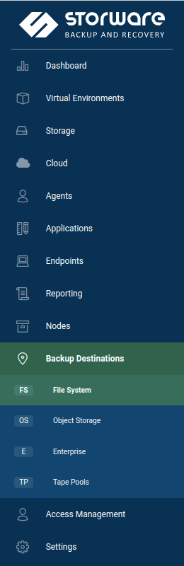 A backup destination is a storage location where Storware Backup & Recovery keeps VMs, Containers, Cloud, and applications backup copies. To configure a backup destination, you can use the following storage types: