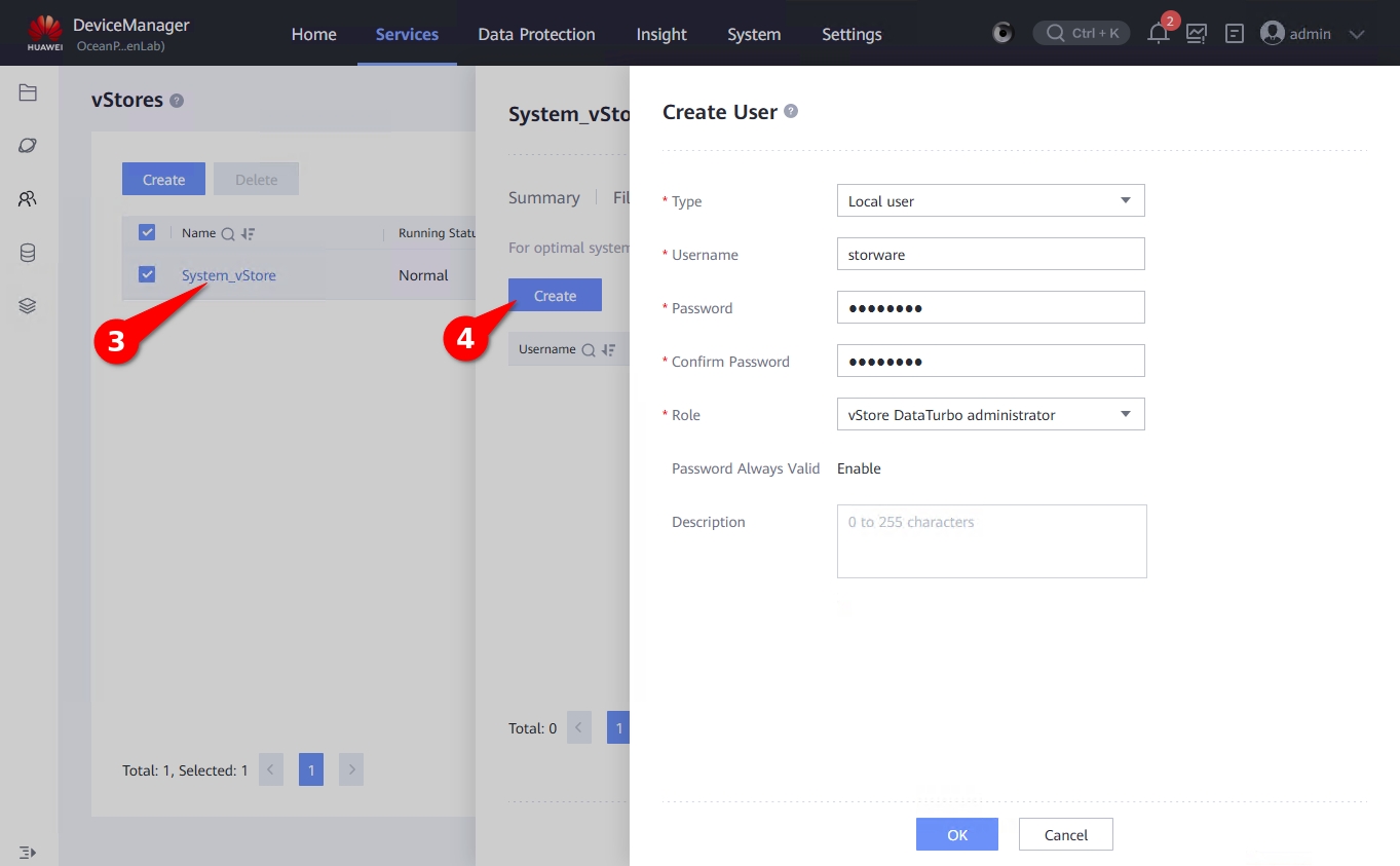 Create_DT_user_01.png Select vStore -> Create new user with role "vStore DataTurbo administrator"