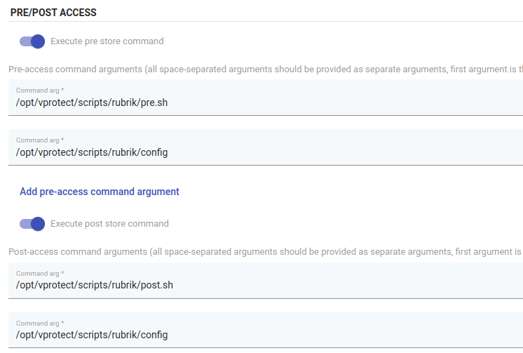 Finally, you need to activate pre and post store commands. In each, add two command arguments like in example: