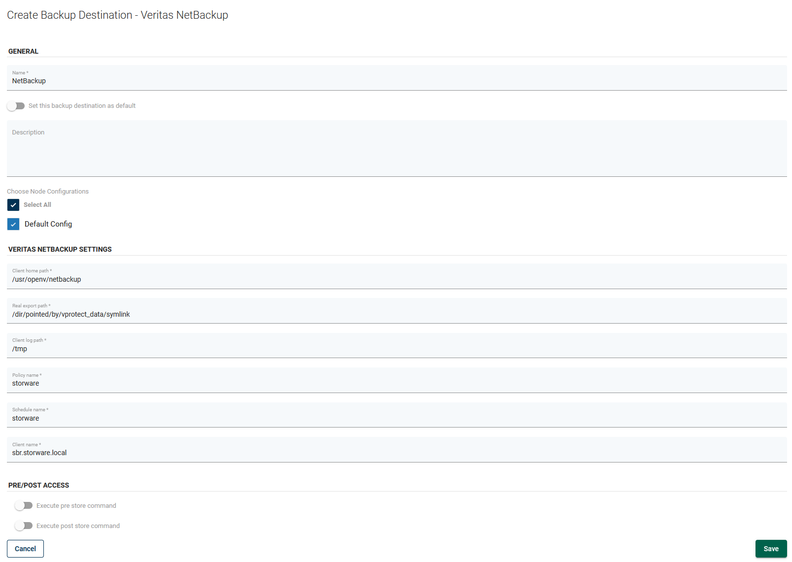 Log in to Storware Backup & Recovery, go to "Backup Destinations" and select the "enterprise" sub-tab. Click on "Create Backup Destination" and choose "Veritas Netbackup". Type the name for the new backup destination, client home path, and real export path. Finally, set the Netbackup parameters: