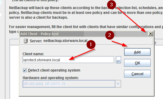 To add a new client, we need to create a policy rule for it where we will configure the type and schedule of this client backup. The client will be added automatically after the creator finishes.
