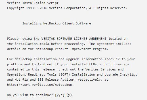 Confirm the NetBackup client name and press Enter to continue.