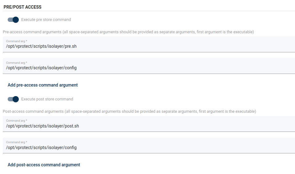 mkdir /NFS/NFS SBR_NODE_IP(rw,sync,no_all_squash,no_root_squash)ssh-keygen Generating public/private rsa key pair. Enter file in which to save the key (/root/.ssh/id_rsa): Enter passphrase (empty for no passphrase): Enter same passphrase again: Your identification has been saved in /root/.ssh/id_rsa. Your public key has been saved in /root/.ssh/id_rsa.pub. The key fingerprint is: SHA256:H2NJwORiG3oJDm78sKEx4EuOzIm13vUsJ6NfMOPVgt0 root@vpro43-vmware The key's randomart image is: +---[RSA 3072]----+ | oo | | ... | |. . . + . . | |oo o + B + . | |ooB o O S E | |B*o* o = + o | |+*o . o . . | | . . .++. | | . oo.=o | +----[SHA256]-----+cat /root/.ssh/id_rsa.pub > /root/.ssh/authotized_keysscp /root/.ssh/id_rsa root@SBR_NODE_IP:/opt/vprotect/.ssh/chown vprotect:vprotect /opt/vprotect/.ssh/id_rsassh -i /opt/vprotect/.ssh/id_rsa root@NFSsvi /opt/vprotect/scripts/isoLayer/config) NFS_HOST=NFS4.2_HOST_IP SSH_USER=root SSH_KEY=~/.ssh/id_rsa NFS_HOST_PATTERN=NODE_IP NFS_ROOT=PATH_FOR_MOUNT_POINTS NFS_OPTS=rw,sync,insecure,no_root_squash,no_subtree_check