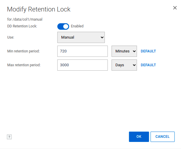 Retention lock option allows you to protect your backups from any changes for a certain number of days. It requires Data Domain retention lock to be enabled. It must be set to Manual mode and allow you to set the required retention lock (it is limited by Data Domain):