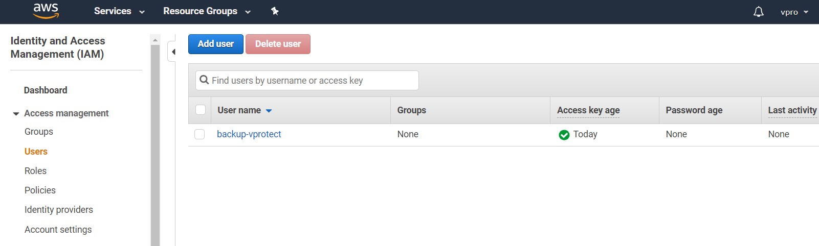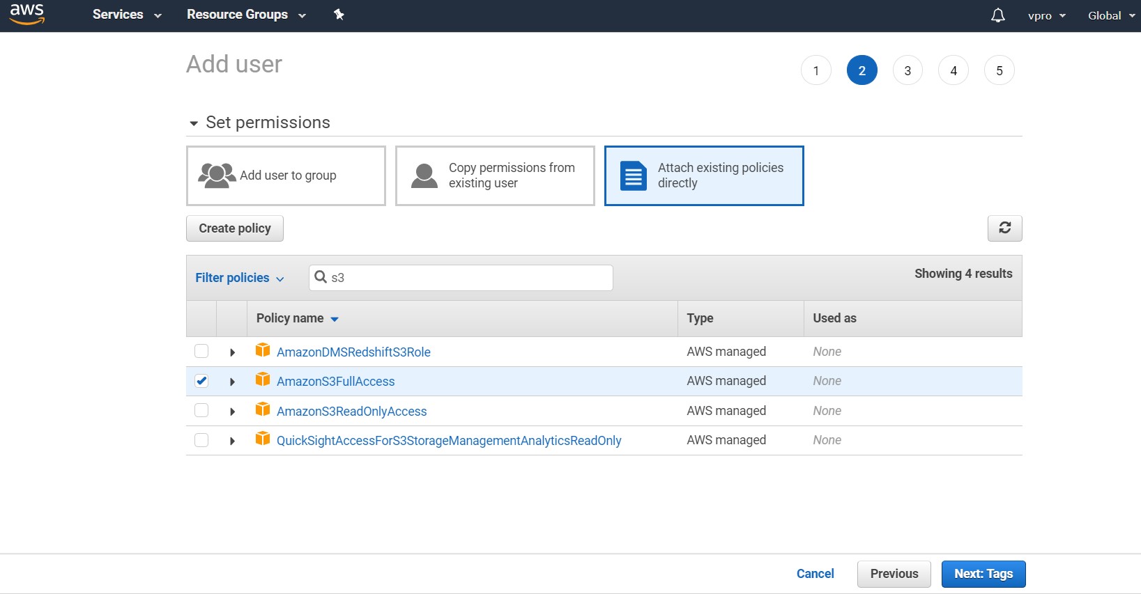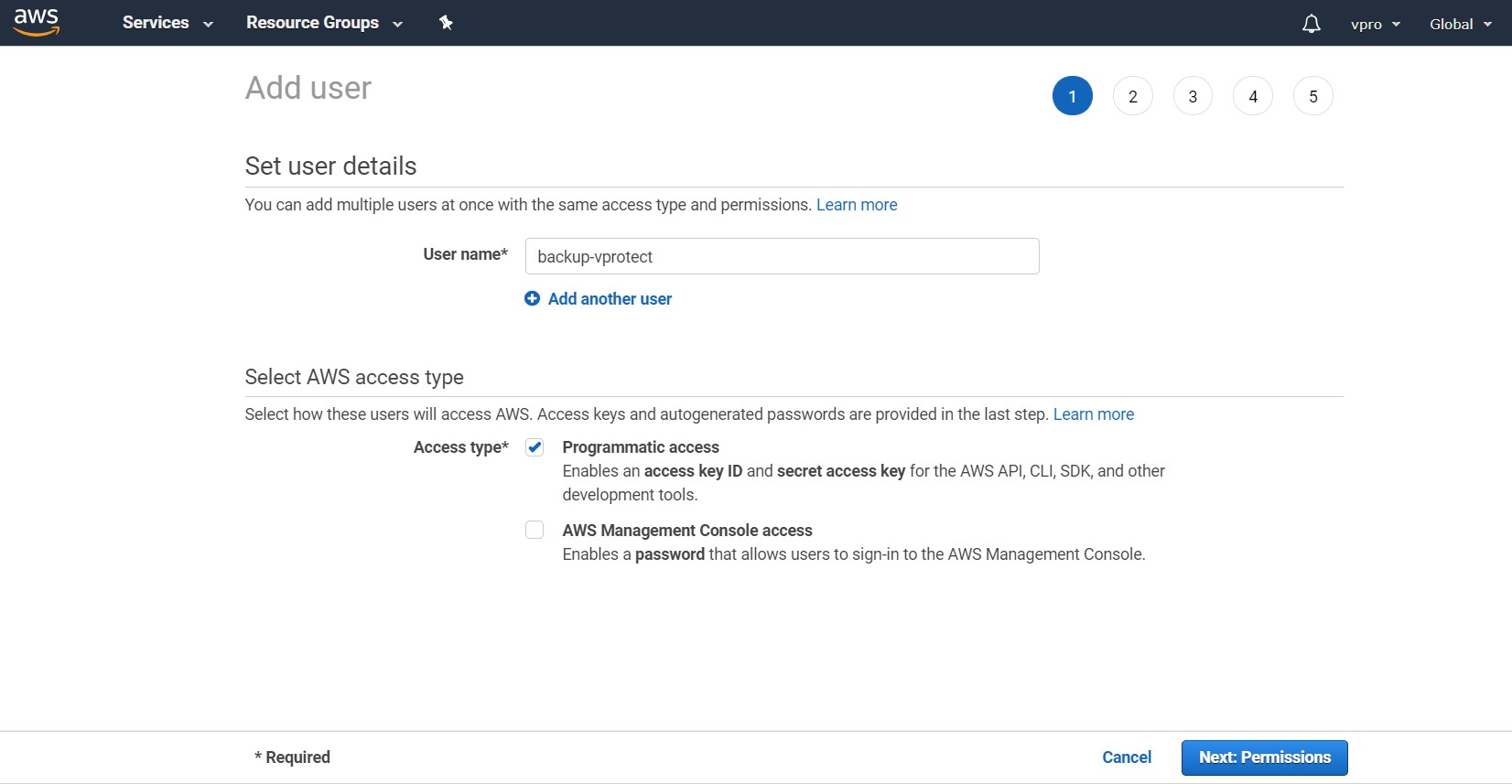 Remember to choose the "Programmatic access" account type: