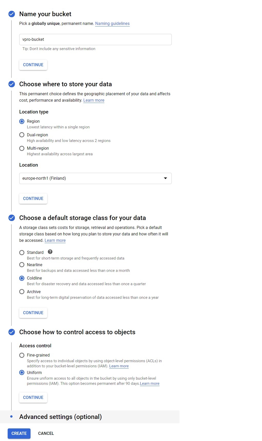 Create a bucket: Click here for more info about Creating Storage Buckets.