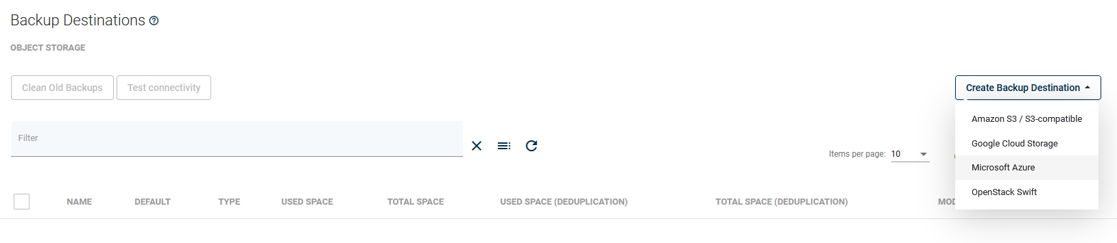 Now you can go to the backup destinations tab in Storware Backup & Recovery and create a new Microsoft Azure backup destination.