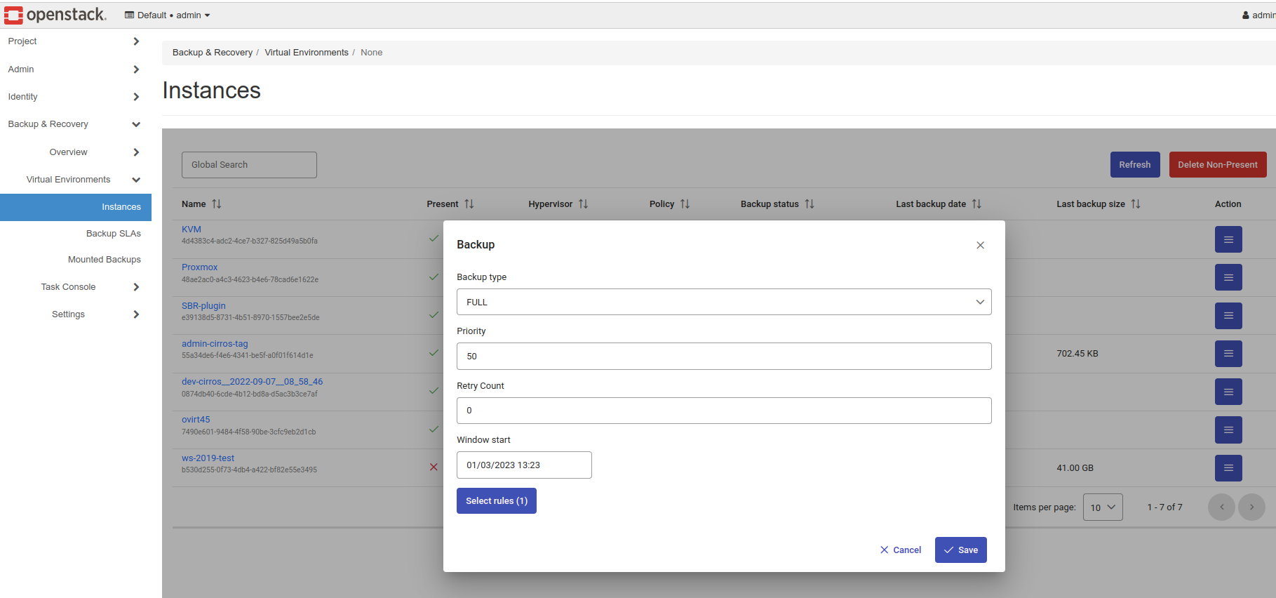 Integration with the Openstack interface is our second plugin alongside the oVirt/RHV virtualization family. Thanks to it, you can perform most of the basic operations without logging into the Storware Backup & Recovery dashboard.