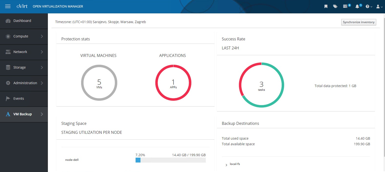 Integration with the oVirt Virtualization interface allows administrators to perform most of the basic operations without logging into the Storware Backup & Recovery dashboard.