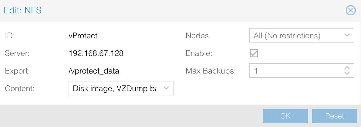/vprotect_data PROXMOX_HOSTS(fsid=6,rw,sync,insecure,all_squash,anonuid=993,anongid=990)[root@vProtect3 ~]# id vprotect uid=993(vprotect) gid=990(vprotect) groups=990(vprotect)