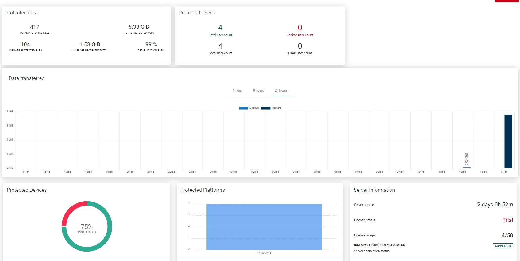This dashboard allows checking overall Storware Endpoints server statistics.
