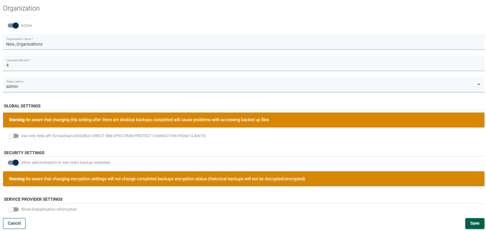 This menu allows you to manage Storware Endpoints organizations in Storware Backup & Recovery.