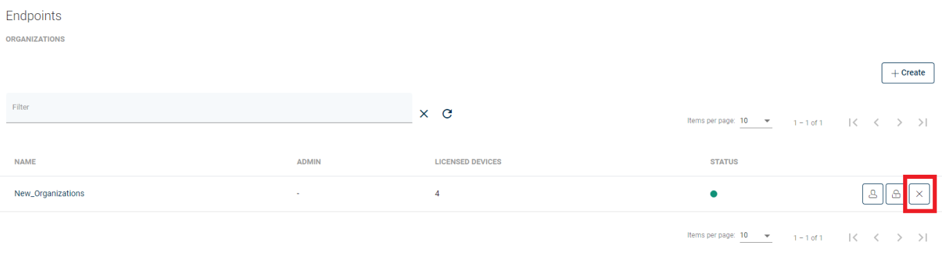To delete an organization just choose one and click the Delete button and confirm the operation: