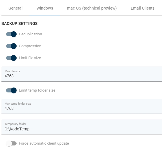 Deduplication - turn on or off data deduplication on the source (endpoint)