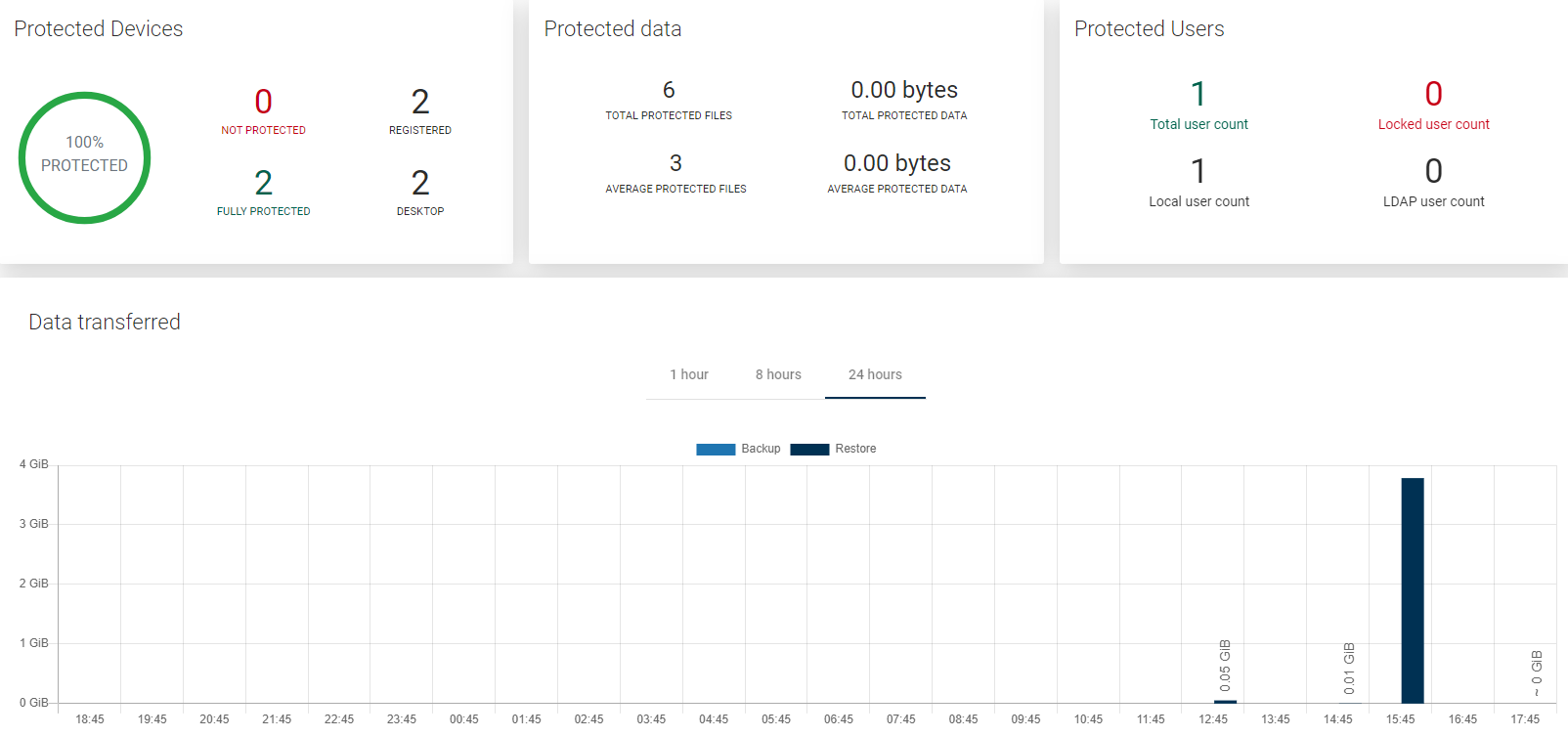 Data transferred chart (it shows backup/restore data amount from last 1/8/24 hours).