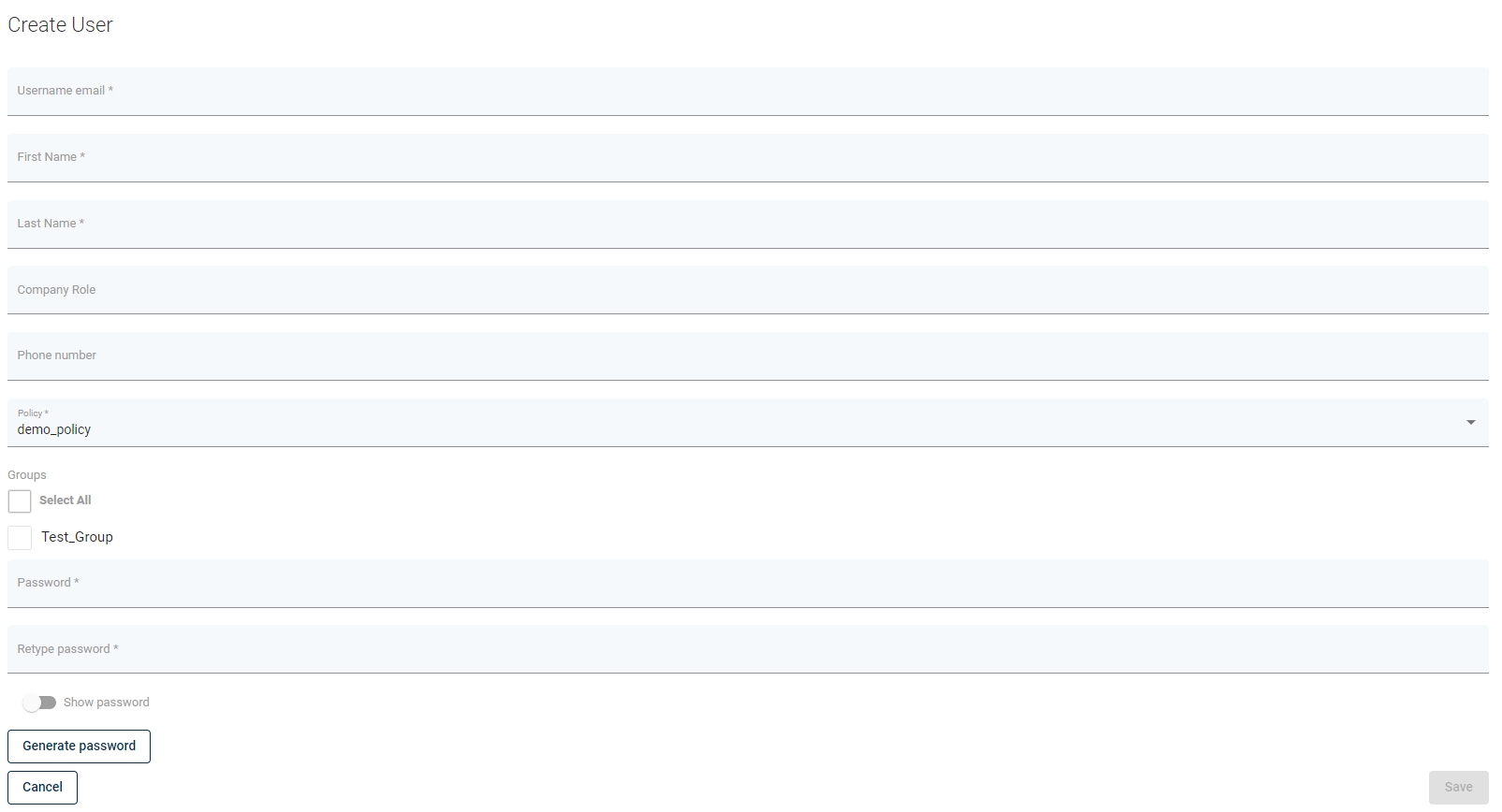 Note: Password must meet the requirements specified in the policy selected for the user