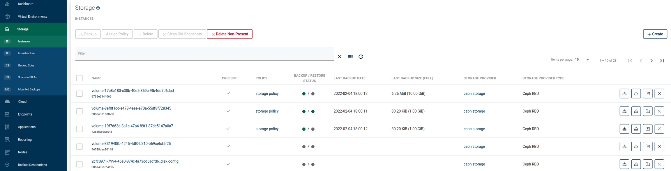 To restore a single storage instance on-demand, go to the instances tab under the Storage Providers section. Click on the restore icon next to the object ![]()