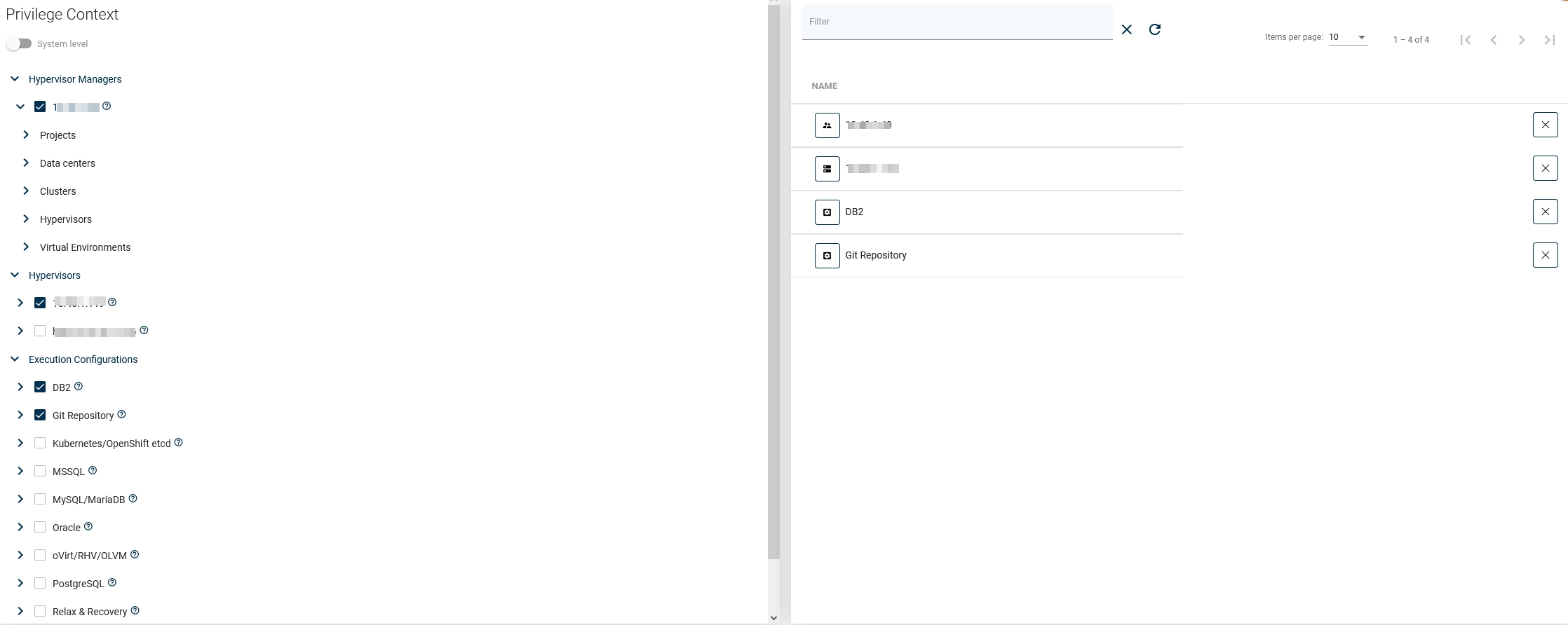 The object hierarchy is constructed in a way that any defined privileges will apply to the specified object and to all the downstream objects, therefore the System Level security context defines the access to all objects across the platform and disables the choice of lower-level objects.