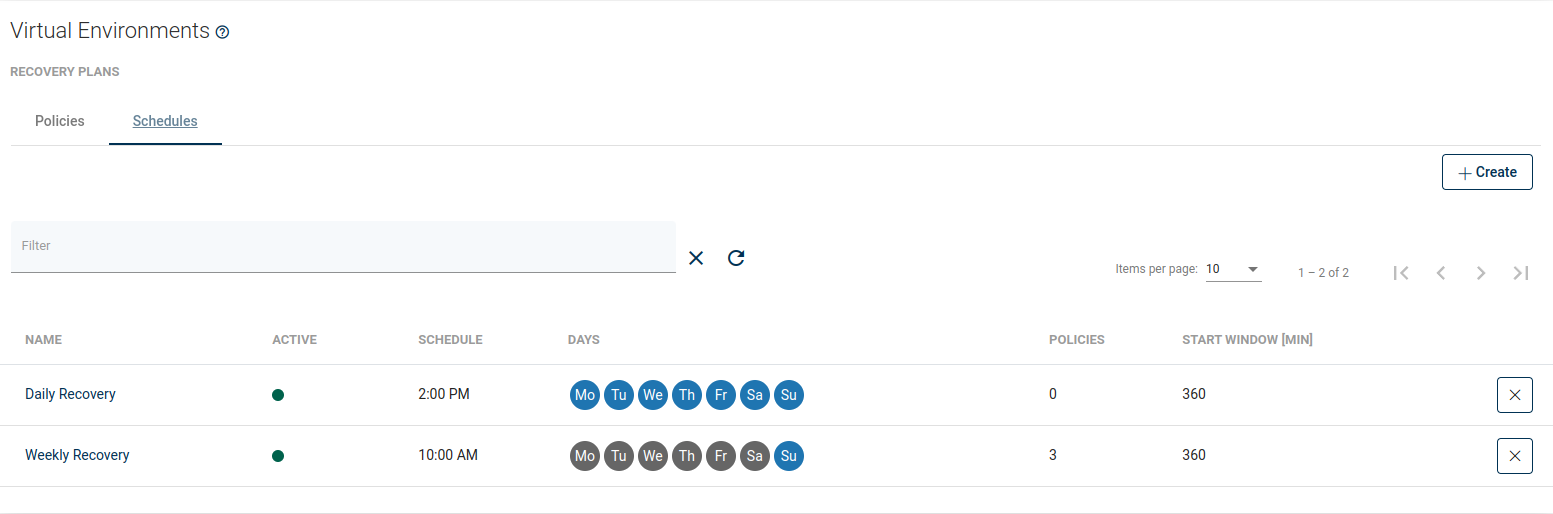 The Schedule defines when and on which days recovery plans should run. To define a new schedule use the ![]()