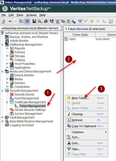 After successful login, please click on the “Token Management” submenu under “Certificate Management”. Next, click the right mouse button on the empty space and select “New Token…”.