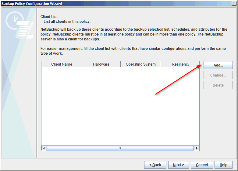 Add the client to back up: