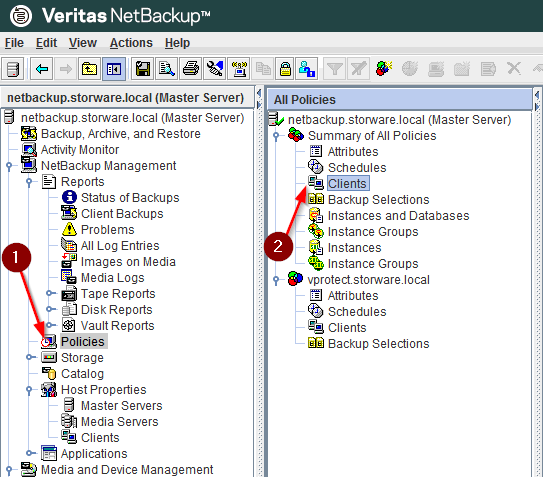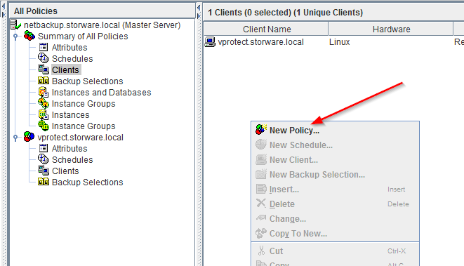 To add a new client, we need to create a policy rule for it where we will configure the type and schedule of this client backup. The client will be added automatically after the creator finishes.