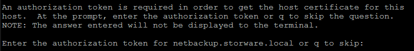 Type the FQDN name of your NetBackup master server (for example NetBackup.organization.local) and press Enter to continue.