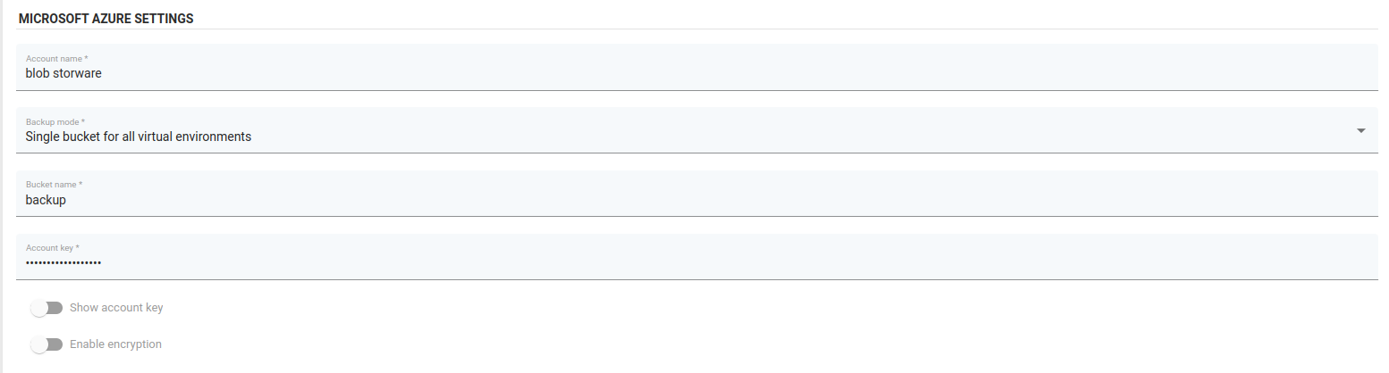 To configure Azure as a backup destination for Storware Backup & Recovery, we just need:
