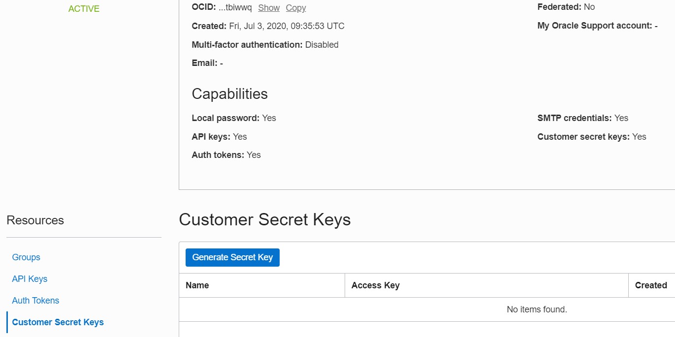 Scroll down and open the "Customer Secret Keys" tab. Click on "Generate Secret Key".