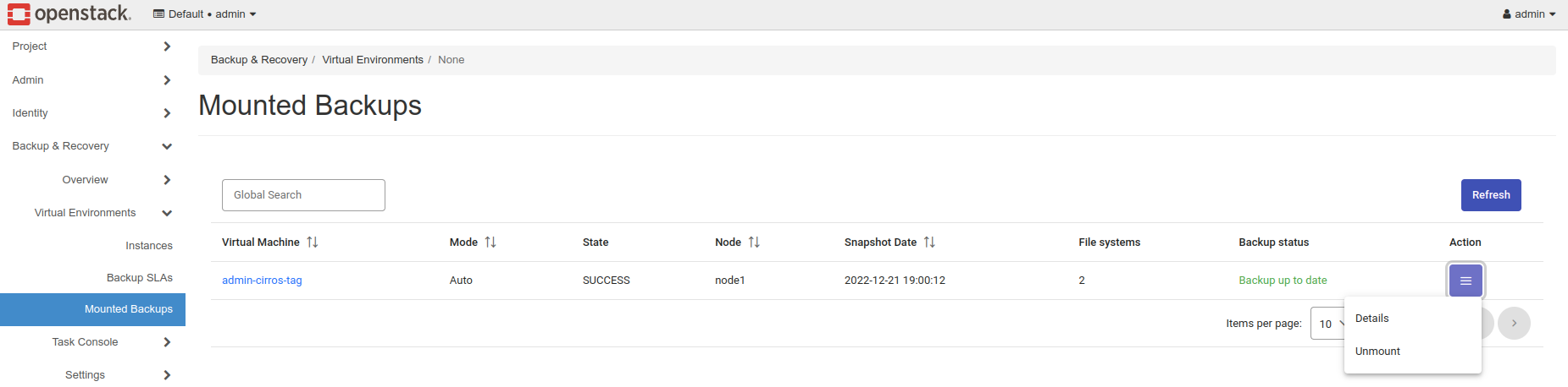 Finally, you can also browse your mounted backups from the OpenStack dashboard. You only need to enter the backup details using the menu on the right.