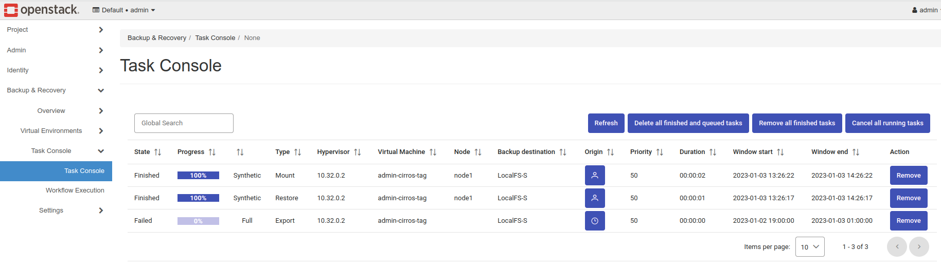 Basic information about current tasks performed by Storware Backup & Recovery.