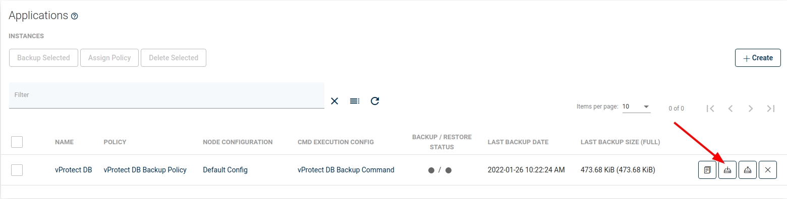 Note: to perform a manual backup, a target Application instance must be assigned to Backup SLA