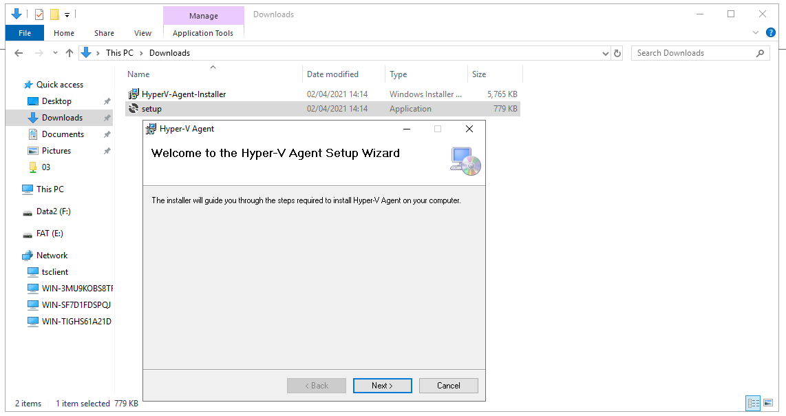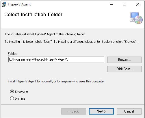 Type path to install Hyper-V Agent. And accept it by clicking Next.