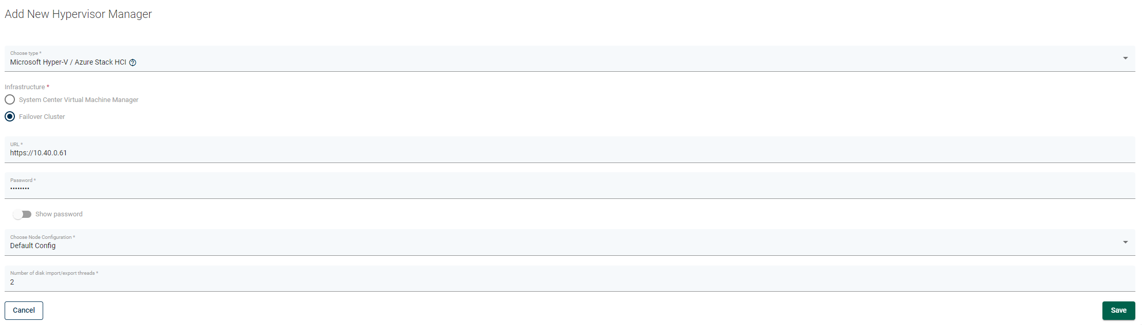 Choose type: Microsoft Hyper-V / Azure Stack HCI