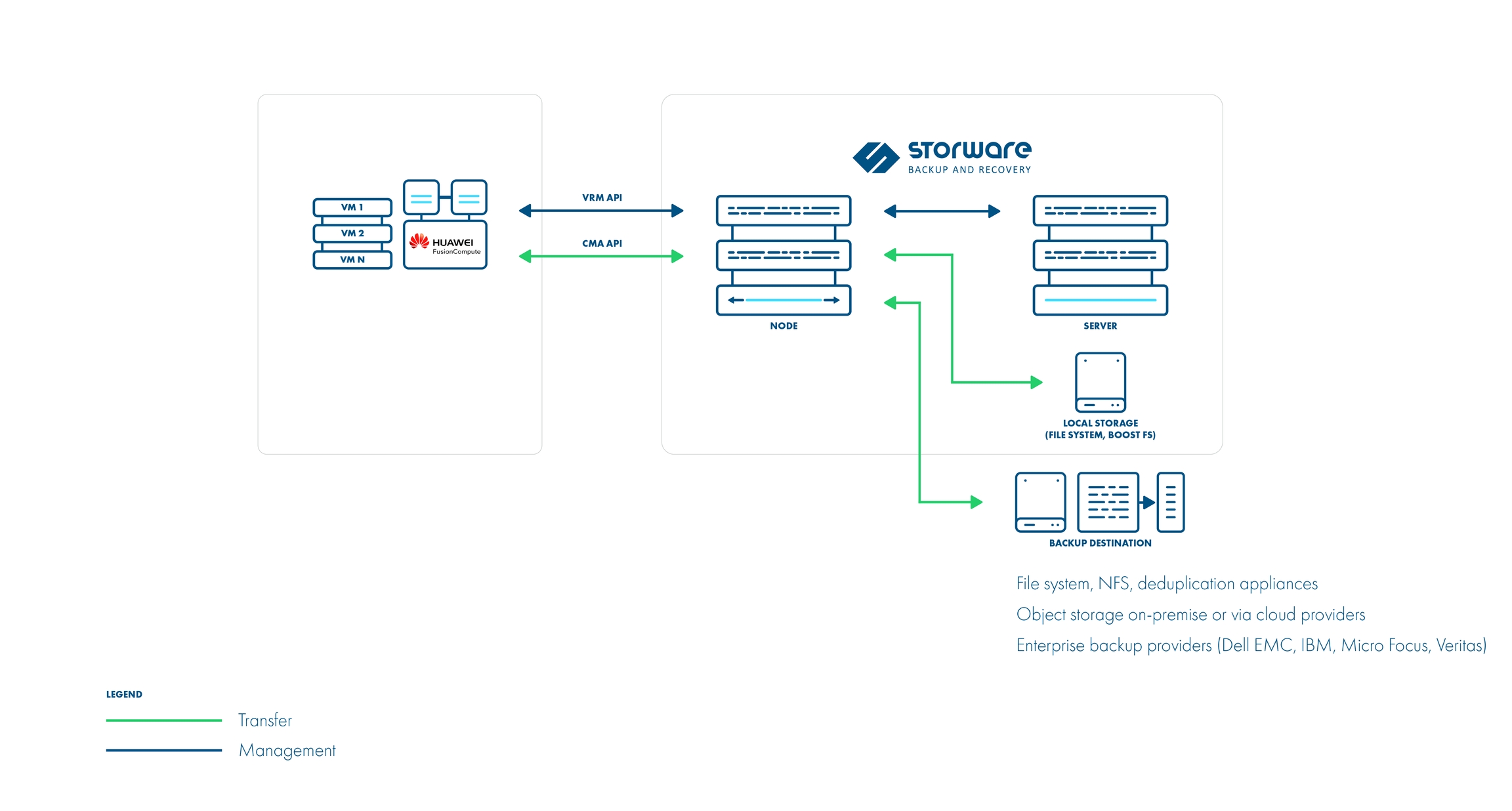Requires a connection to each Hypervisor (data transfer during the backup/restore process will be performed directly between the node and the CNA/Hypervisor on which the VM is running).