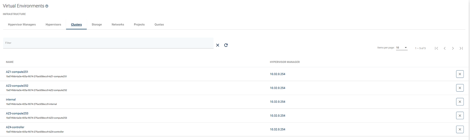 Virtual Environments->Infrastructure->Clustersand select cluster that is used by Openstack.